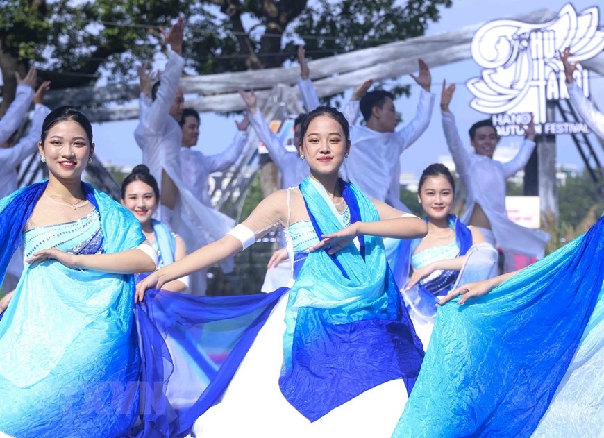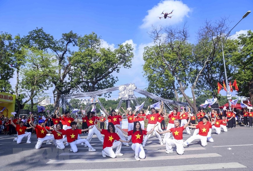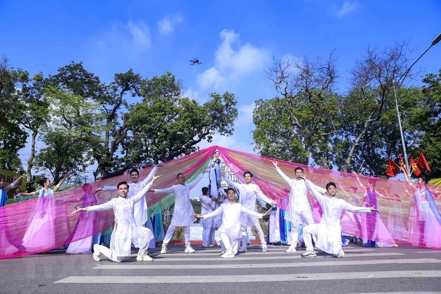 Màn đồng diễn của Tổng Công ty Du lịch Hà Nội. (Ảnh: Tuấn Đức/TTXVN)