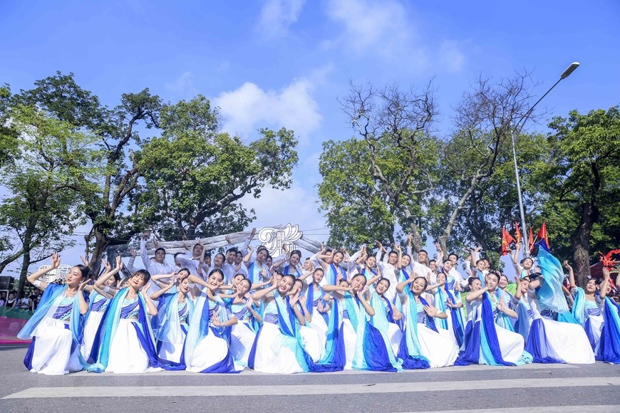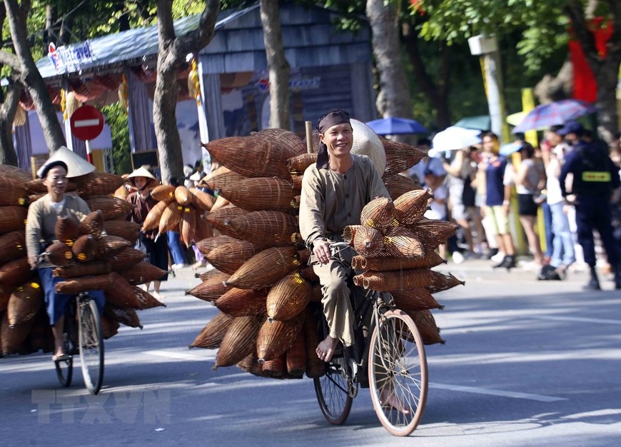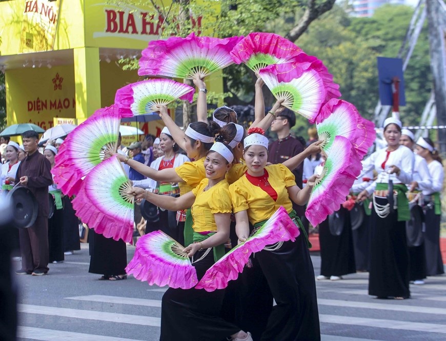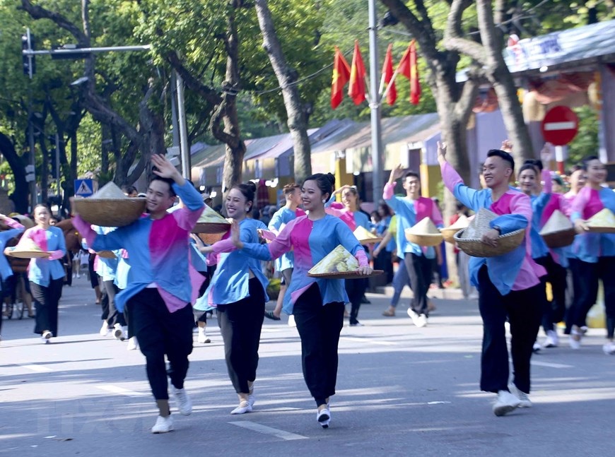 Đoàn diễu hành Tinh hoa Bắc Bộ. (Ảnh: Tuấn Đức/TTXVN)