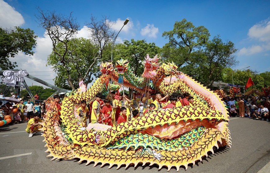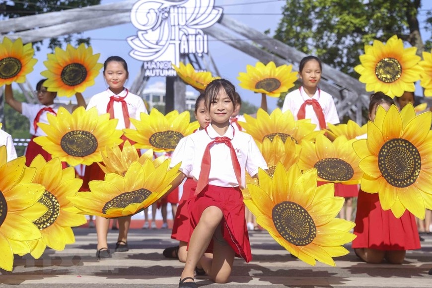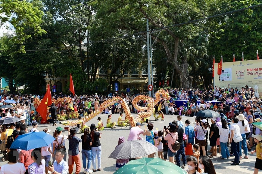 Hà Nội (TTXVN 1/10/2023) Sáng 1/10, Carnaval Thu Hà Nội với quy mô 1.500 người đến từ các đơn vị của thành phố, học sinh, sinh viên, các câu lạc bộ, đoàn nghệ thuật, nghệ nhân... diễn ra sôi động tại Phố đi bộ Hồ Hoàn Kiếm.