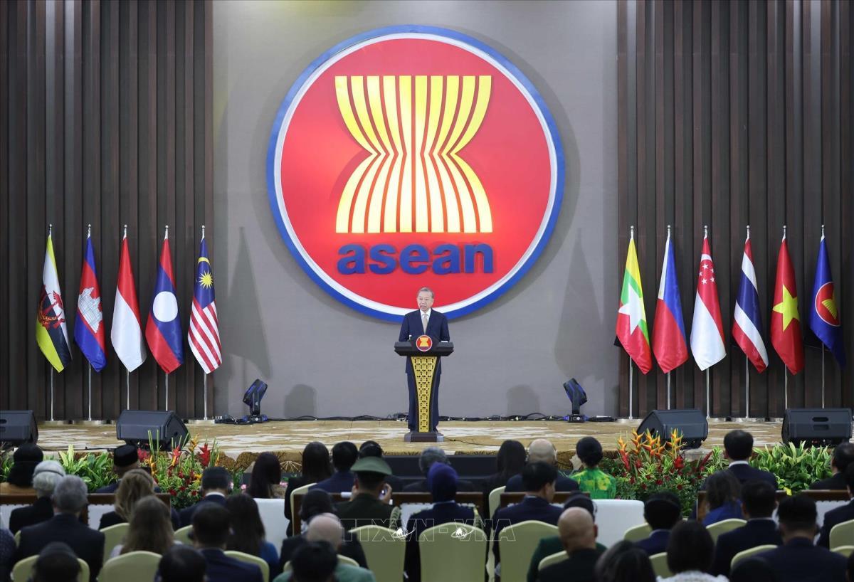 [Ảnh trên: Tổng Bí thư Tô Lâm phát biểu tại Lễ kỷ niệm 30 năm Việt Nam gia nhập ASEAN (Indonesia, 10/3/2025). Ảnh: Thống Nhất - TTXVN]