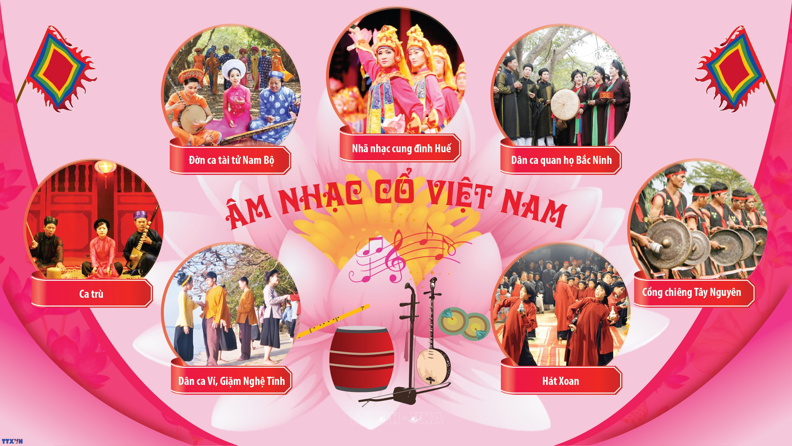 Thật tự hào vì chúng ta có tới 7 loại hình âm nhạc cổ truyền đã được Tổ chức Văn hóa, Khoa học, Giáo dục Liên hợp quốc (UNESCO) ghi danh vào Danh sách Các di sản văn hóa phi vật thể đại diện của nhân loại, gồm: Nhã nhạc - Nhạc Cung đình Triều Nguyễn; Không gian văn hóa Cồng chiêng Tây Nguyên; Dân ca Quan họ Bắc Ninh; Hát Ca trù; Hát Xoan Phú Thọ; Nghệ thuật Đờn ca tài tử Nam Bộ; Dân ca Ví, Dặm Nghệ Tĩnh.