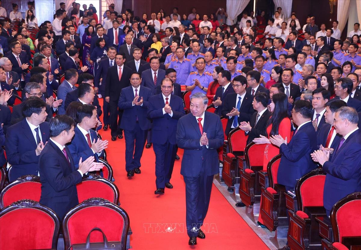 [Ảnh trên: Tổng Bí thư Tô Lâm, các đồng chí lãnh đạo, nguyên lãnh đạo Đảng, Nhà nước và các đại biểu dự Đại hội (24/9/2025). Ảnh: Thống Nhất – TTXVN]