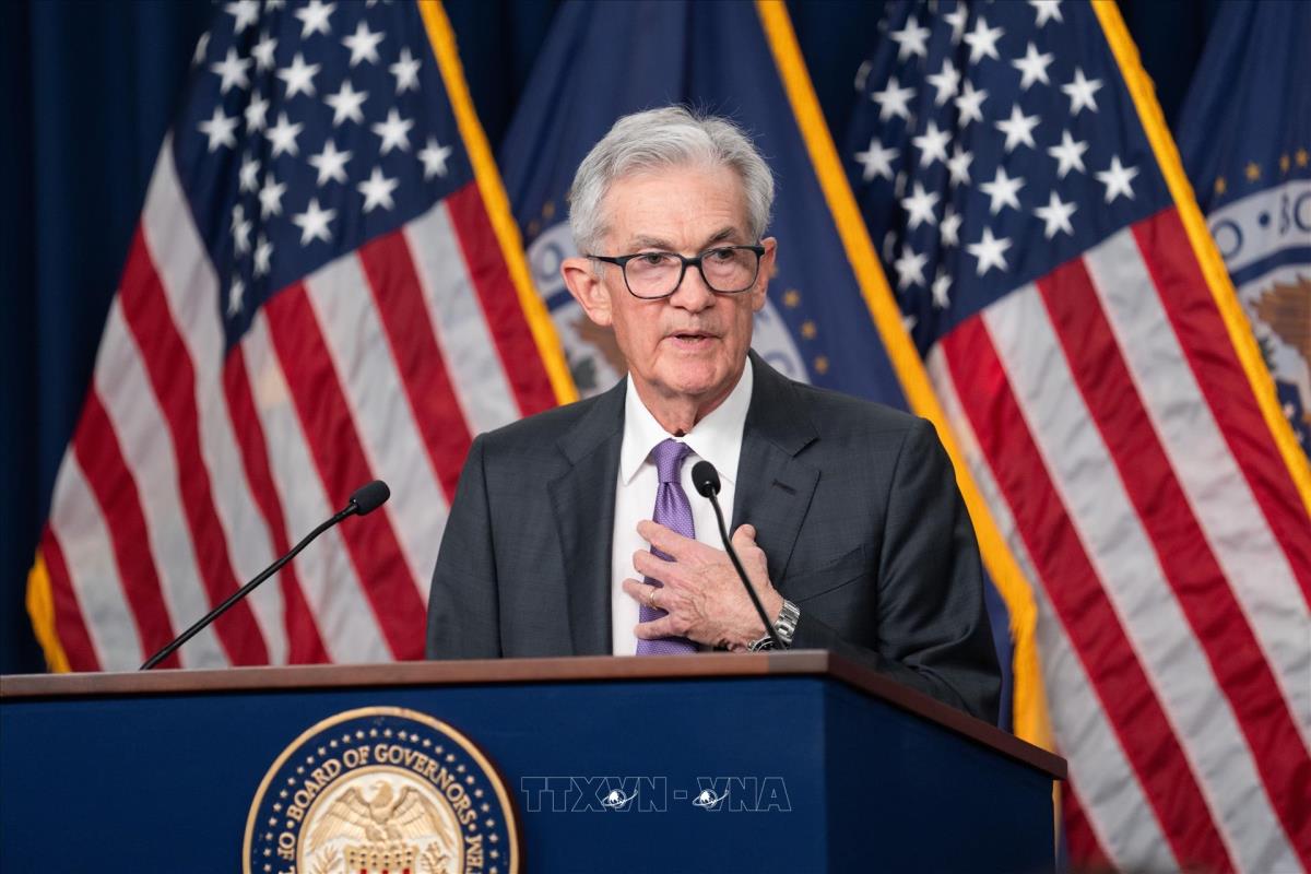 [Trong ảnh: Chủ tịch Cục dự trữ liên bang Mỹ (FED) Jerome Powell trong cuộc họp báo công bố chính sách lãi suất ở Washington, D.C., ngày 20/3/2024. Ảnh: THX/TTXVN]