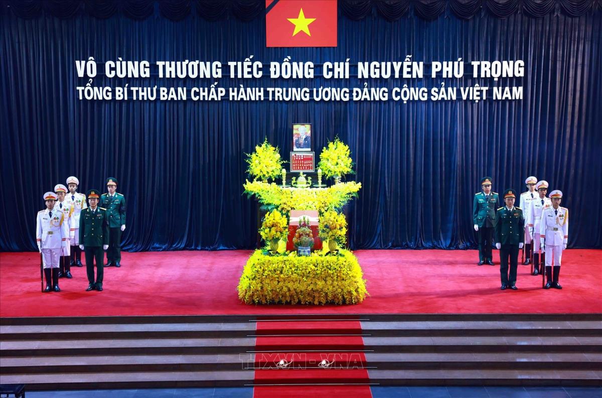 [Ảnh trên: Linh cữu Tổng Bí thư Nguyễn Phú Trọng quàn tại Nhà tang lễ Quốc gia số 5 Trần Thánh Tông, Hà Nội. Ảnh: TTXVN]