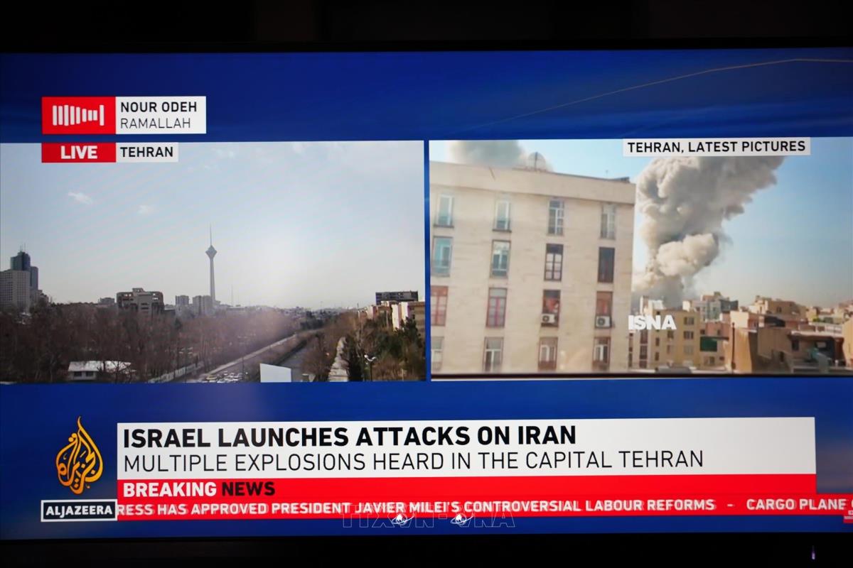 [Hình ảnh được phát trên kênh truyền thông Al Jazeera có trụ sở ở Qatar cho thấy vụ tấn công "phủ đầu" của Israel vào thủ đô Tehran của Iran ngày 28/2/2026. Ảnh: THX/TTXVN].