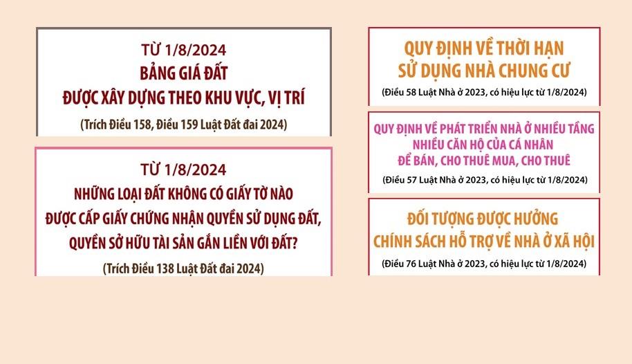 789 Trong tháng 8/2024, có nhiều chính sách mới quan trọng ảnh hưởng lớn đến người dân cả nước như các nghị định quy định về giá đất; về bồi thường, hỗ trợ, tái định cư khi Nhà nước thu hồi đất.. Chia sẻ: Từ khóa:Chính sách có hiệu lực