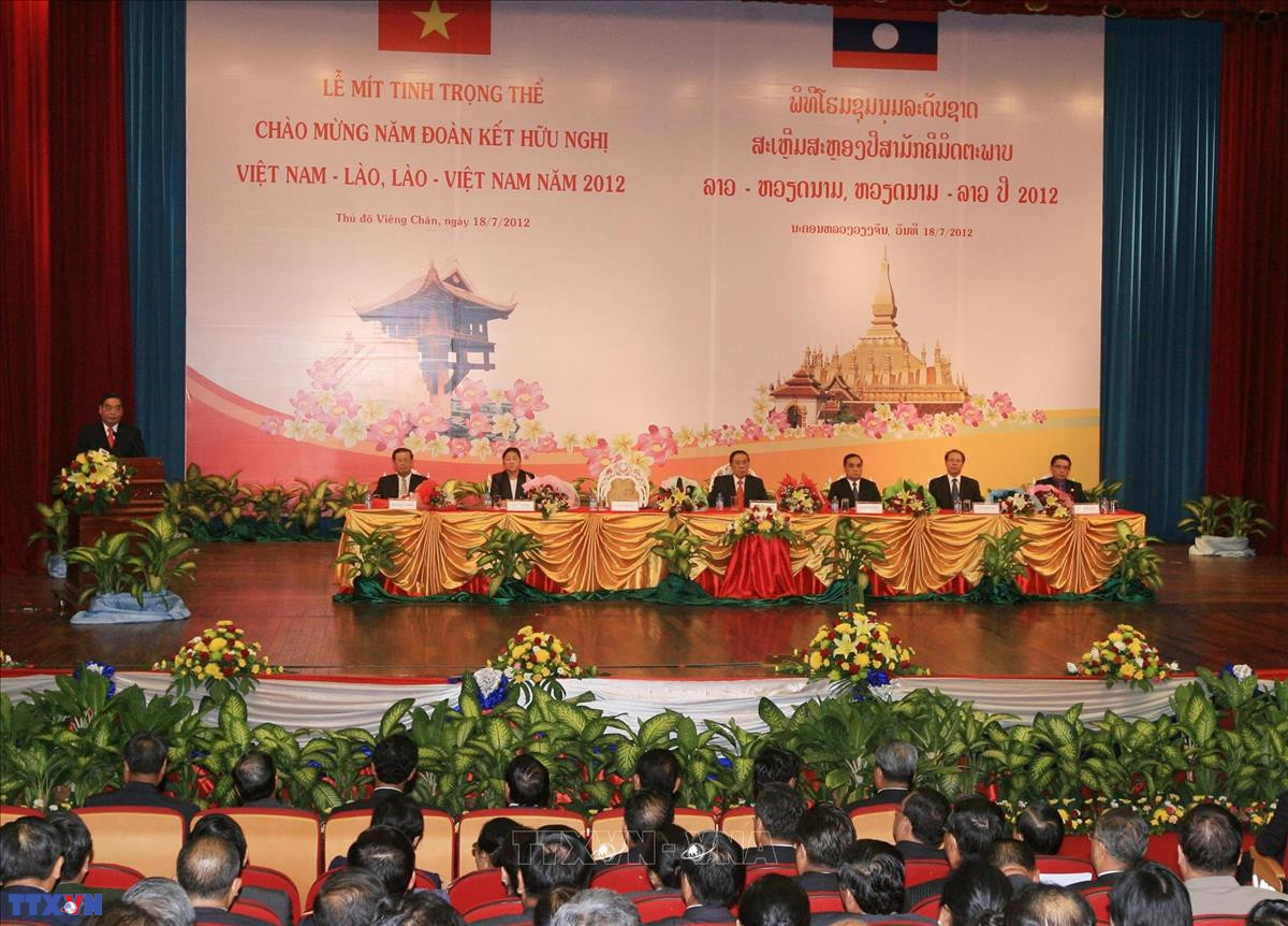 Năm 2012 là một trong những năm có các hoạt động đối ngoại dồn dập nhất với 49 đoàn Lãnh đạo Cấp cao các nước thăm Việt Nam, 37 đoàn Lãnh đạo Cấp cao Việt Nam thăm các nước và dự các Hội nghị quốc tế. Đặc biệt, Năm Đoàn kết, Hữu nghị Việt Nam - Lào nhân kỷ niệm 50 năm ngày thiết lập quan hệ ngoại giao (5/9/1962 - 5/9/2012), 35 năm ngày ký Hiệp ước Hữu nghị và Hợp tác Việt Nam - Lào (18/7/1977 - 18/7/2012) được triển khai với nhiều hoạt động thiết thực, thể hiện sinh động tình đoàn kết hữu nghị đặc biệt và quan hệ hợp tác toàn diện giữa hai nước.
