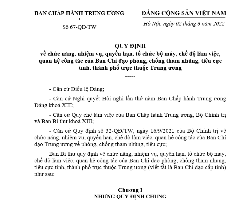 Toàn bộ 63 Ban Thường vụ tỉnh ủy/thành ủy đã thành lập Ban Chỉ đạo phòng, chống tham nhũng, tiêu cực của các địa phương. Với sự vào cuộc mạnh mẽ và đồng bộ của các Ban Chỉ đạo ở trung ương và địa phương, nhiều vụ tham nhũng, tiêu cực có sự móc ngoặc, thông đồng từ trung ương đến địa phương, giữa một số lãnh đạo các cấp với doanh nghiệp, và đặc biệt các đại án có sự tham gia của các doanh nghiệp ngoài nhà nước như Việt Á, FLC, Tân Hoàng Minh, An Đông…, đã được đưa ra ánh sáng.