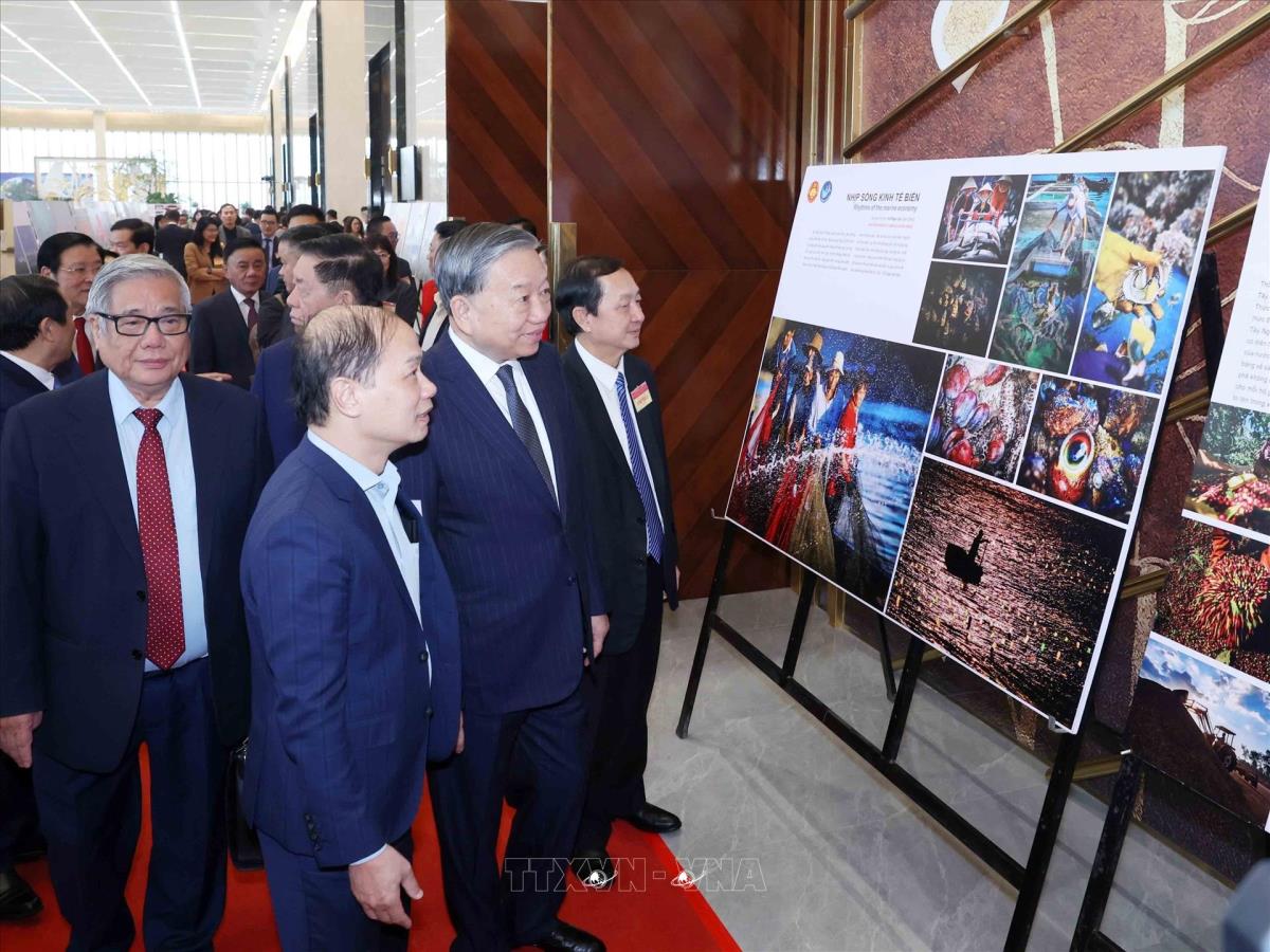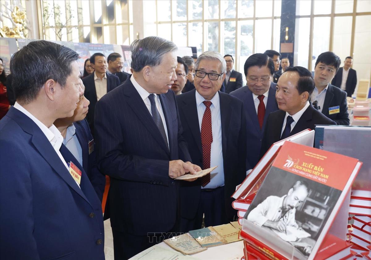 * Trước đó, Tổng Bí thư Tô Lâm và các đồng chí lãnh đạo Đảng, Nhà nước cùng đông đảo đại biểu đã tham quan Không gian trưng bày Sách, Triển lãm Ảnh và thành tựu chuyển đổi số trong báo chí.