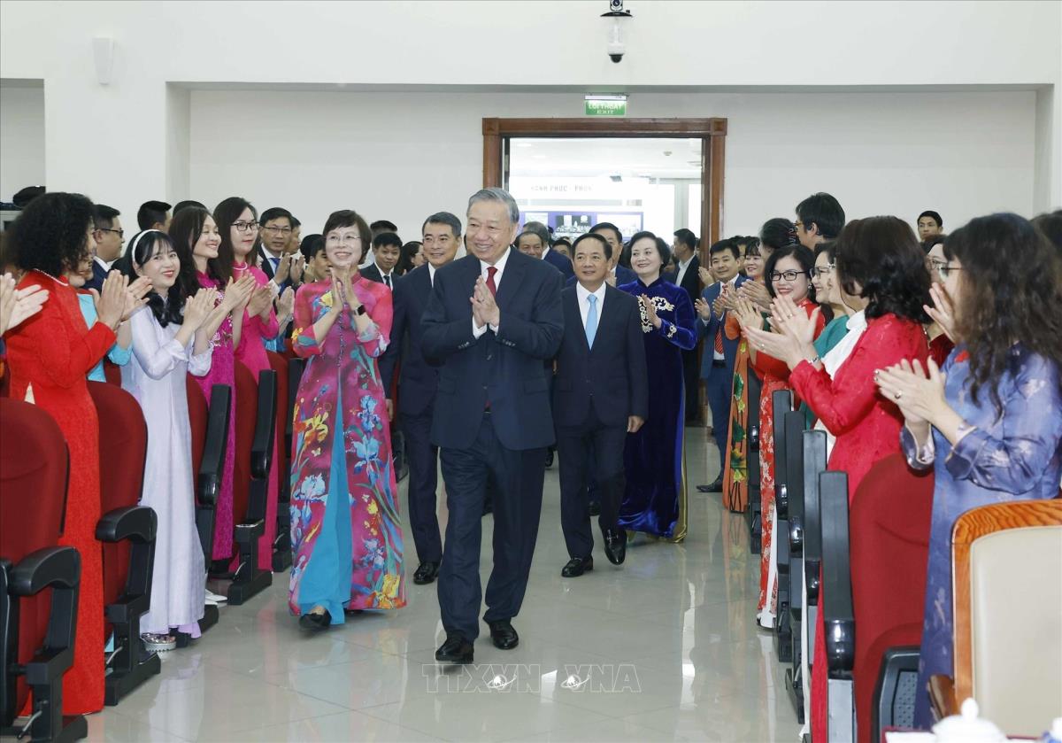 [Ảnh trên: Tổng Bí thư Tô Lâm tặng quà cho cán bộ, phóng viên, biên tập viên, người lao động Thông tấn xã Việt Nam (24/2/2026). Ảnh: Thống Nhất - TTXVN]