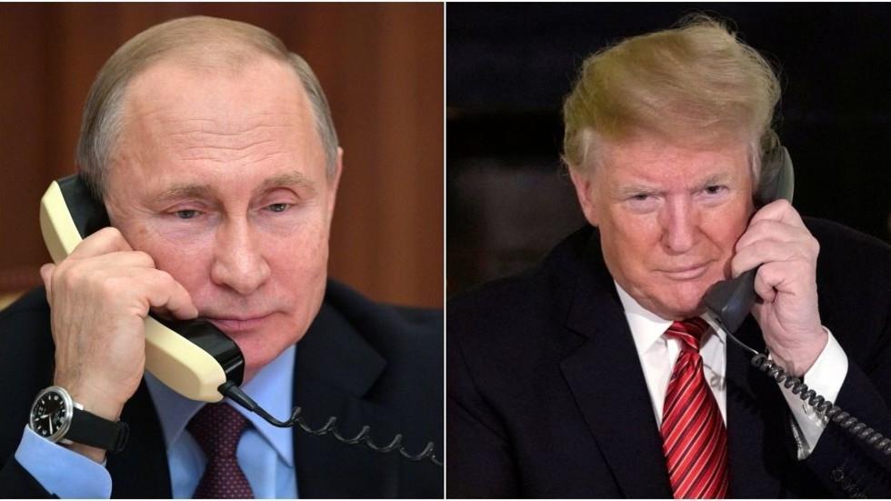 [Trong ảnh: Tổng thống Nga Vladimir Putin (trái) điện đàm với Tổng thống Mỹ Donald Trump. Ảnh: RT]