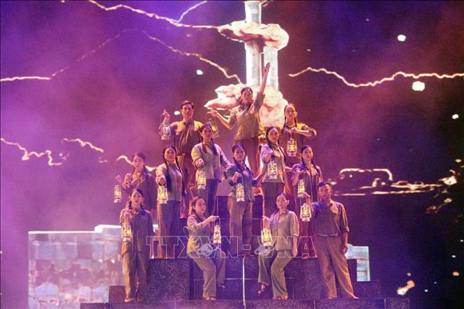 Trong ảnh: Vở kịch tái hiện hình ảnh các thanh niên xung phong chiến đấu, hy sinh tại Truông Bồn. Ảnh: Tá Chuyên/TTXVNTXVN