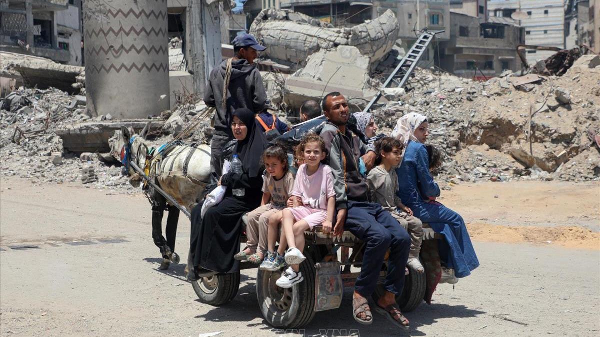 [Ảnh trên: Trong suốt hơn 700 ngày đêm kể từ khi vòng xung đột Palestine-Israel mới bùng phát, chiến sự ở Gaza gần như không ngừng nghỉ. Theo thống kê của ngành y tế Gaza, các hoạt động quân sự của Israel đã khiến hơn 230.000 người thương vong. Cứ mỗi 52 phút lại có một trẻ em thiệt mạng ở Gaza, hầu như toàn bộ người dân đã phải di tản, và hơn 500.000 người rơi vào nạn đói... Ảnh: Sơ tán tránh chiến sự tại Jabalia, Dải Gaza. Ảnh: THX/TTXVN]