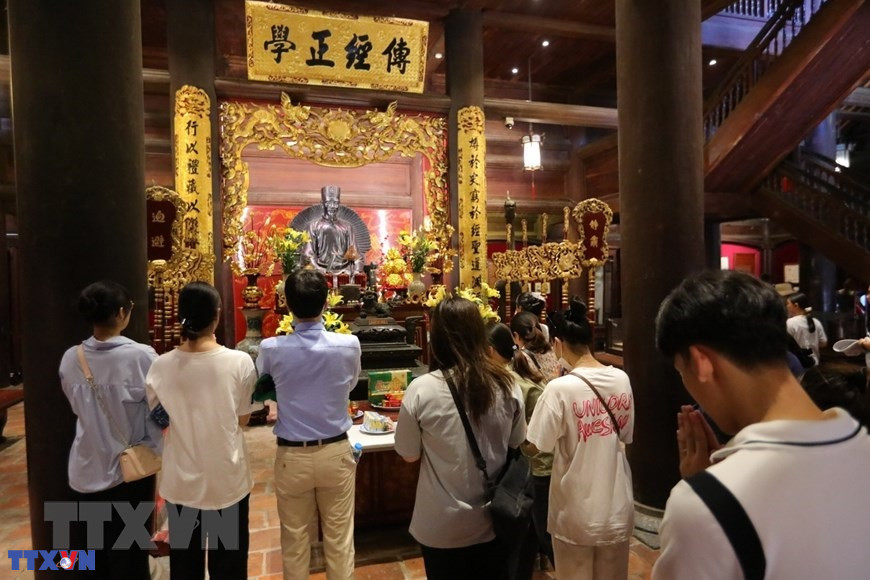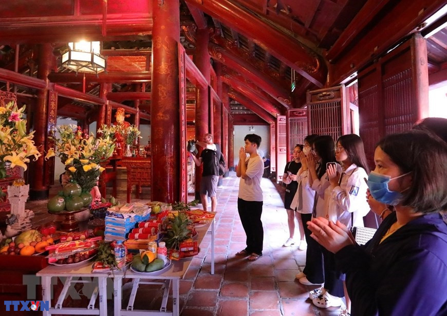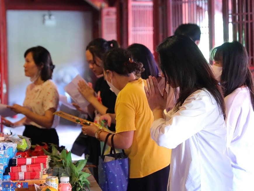 Hà Nội (TTXVN 07/06/2023) Càng gần đến ngày diễn ra Kỳ thi tuyển sinh lớp 10 THPT và Kỳ thi Đại học năm 2023, Khu Di tích Quốc gia Đặc biệt Văn Miếu-Quốc Tử Giám đón rất nhiều sỹ tử và phụ huynh tới thắp hương cầu may.