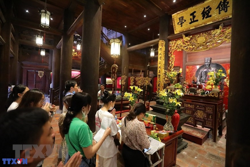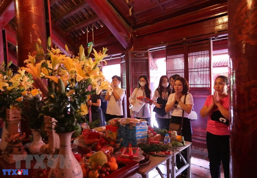 Khu Di tích Quốc gia Đặc biệt Văn Miếu-Quốc Tử Giám đón rất nhiều học sinh, sỹ tử và phụ huynh tới trước Kỳ thi tuyển sinh lớp 10 THPT và Kỳ thi Đại học năm 2023. (Ảnh: Hoàng Hiếu/TTXVN)