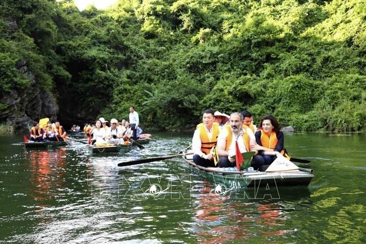 Thủ tướng nước Cộng hòa Armenia Nikol Pashinyan và phu nhân tham quan Khu du lịch sinh thái Tràng An, tỉnh Ninh Bình (6/7/2019). Ảnh: Thùy Dung - TTXVN