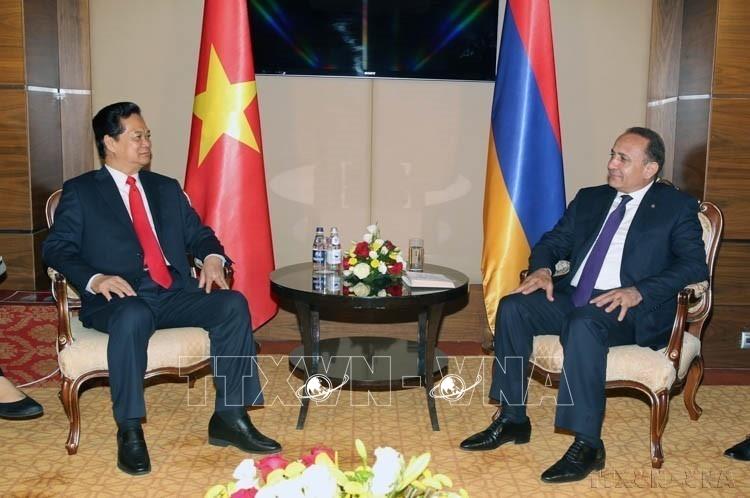 Thủ tướng Nguyễn Tấn Dũng gặp Thủ tướng Cộng hòa Armenia Hovik Abrahamyan bên lề Lễ ký Hiệp định Thương mại tự do giữa Việt Nam và Liên minh Kinh tế Á-Âu (Kazakhstan, 29/5/2015). Ảnh: Đức Tám – TTXVN