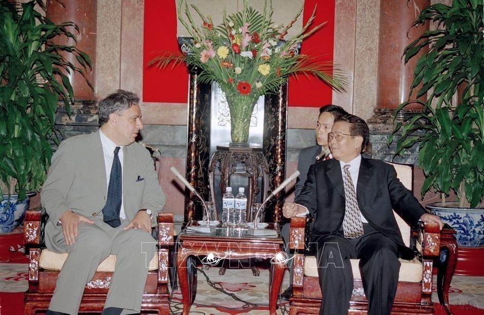 Chủ tịch nước Trần Đức Lương tiếp Bộ trưởng Ngoại giao Armenia V.O Skanian (Hà Nội, 8/8/2002). Ảnh Nguyễn Khang - TTXVN