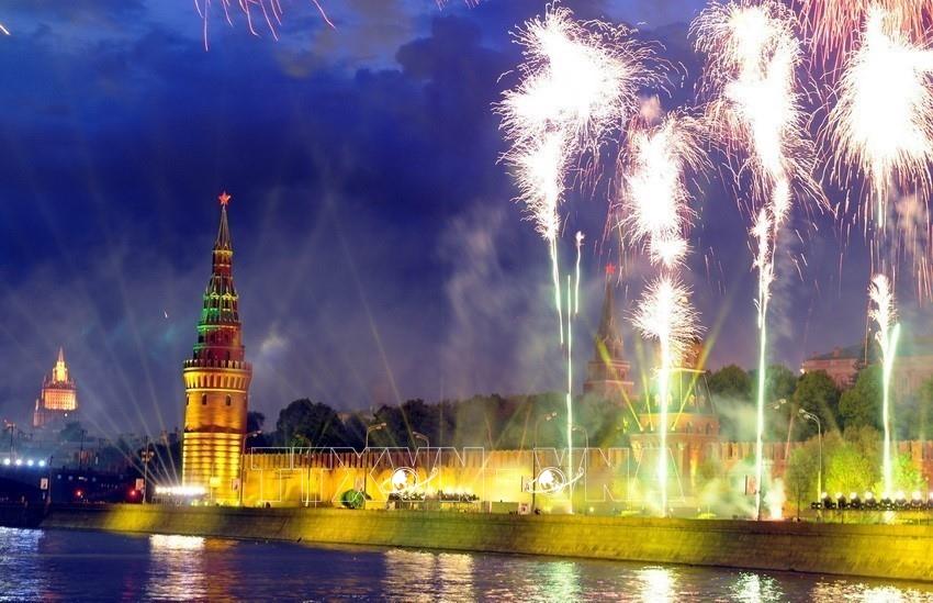 Pháo hoa mừng chiến thắng trong Lễ kỷ niệm 65 năm Ngày chiến thắng phát-xít, tại Moscow (Nga, 9/5/2010). Ảnh: AFP/TTXVN