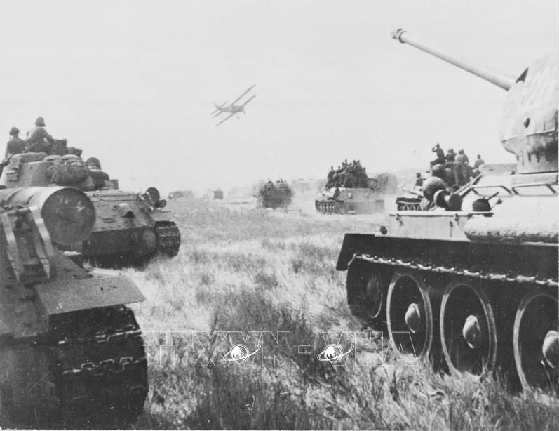 Đêm 9/8/1945, Hồng quân Liên Xô mở màn chiến dịch tấn công đội quân Quan Đông của Nhật tại Mãn Châu (Trung Quốc), tiêu diệt 1 triệu tên, giải phóng Đông Bắc Trung Quốc và Bắc Triều Tiên, đập tan căn cứ kinh tế quân sự - bàn đạp chiến tranh của Nhật trên lục địa, góp phần kết thúc Chiến tranh thế giới thứ hai ở khu vực châu Á - Thái Bình Dương. Ảnh: Tư liệu quốc tế/TTXVN
