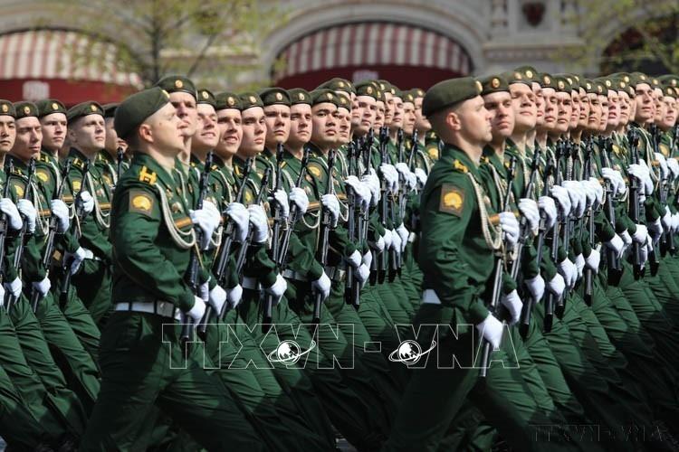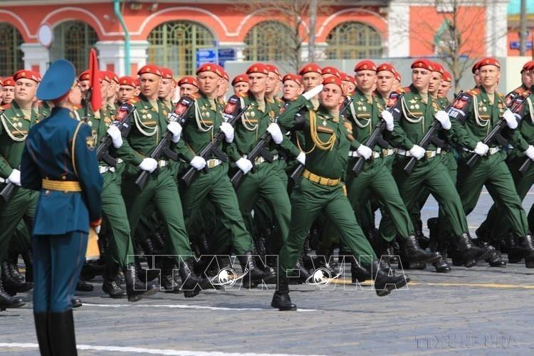 Khối quân nhân các quân binh chủng diễu binh qua lễ đài trong Lễ duyệt binh kỷ niệm 77 năm Chiến thắng phát xít (1945 - 2022), tại Quảng trường Đỏ ở thủ đô Moskva (Nga, 9/5/2022). Ảnh: Trần Hiếu - TTXVN