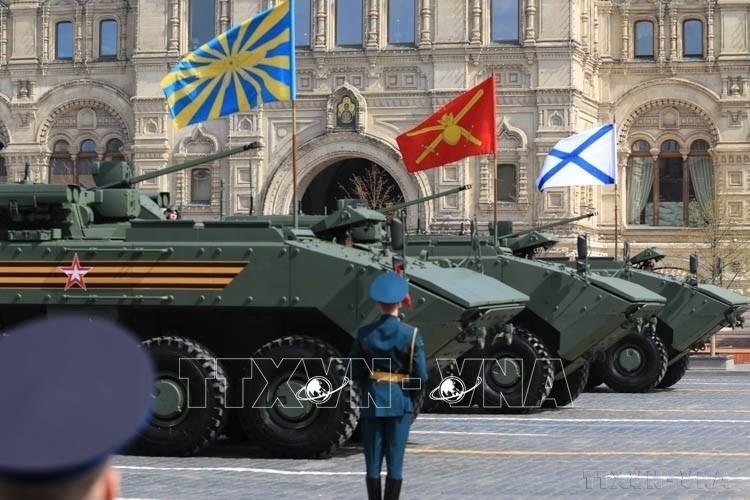 Tổng duyệt chuẩn bị cho Lễ duyệt binh kỷ niệm 77 năm Chiến thắng phát xít (Nga, 07/05/2022). Ảnh: Trần Hiếu - TTXVN