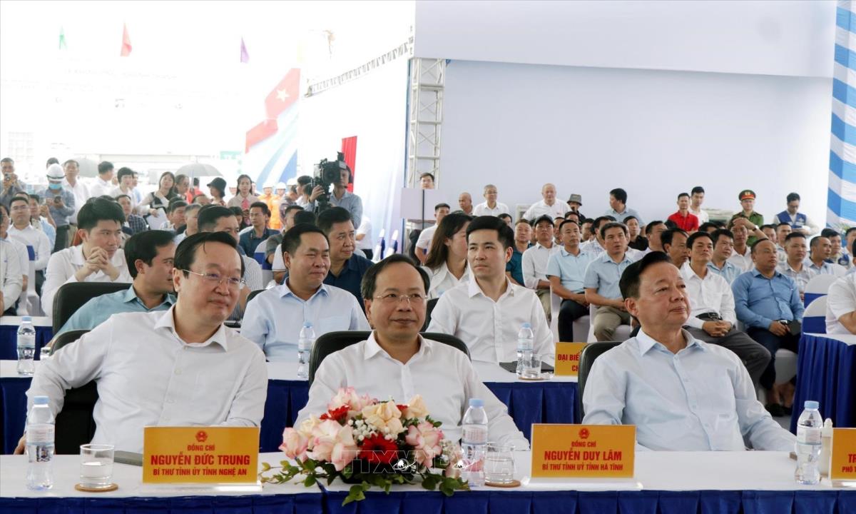 Phó Thủ tướng Trần Hồng Hà cùng các đại biểu dự buổi lễ tại Hà Tĩnh (19/4/2025). Ảnh: Công Tường-TTXVN