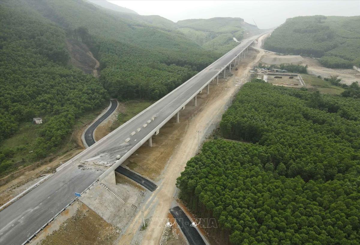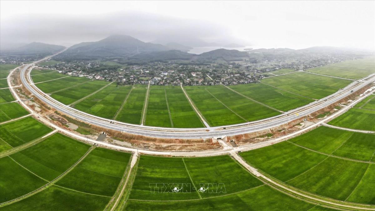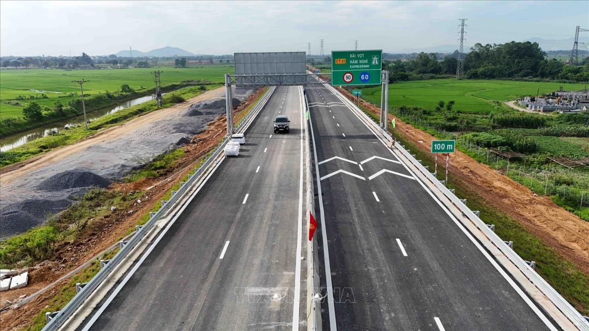 Cao tốc Hàm Nghi - Vũng Áng đoạn qua huyện Kỳ Anh (Hà Tĩnh) (19/4/2025). Ảnh: Công Tường-TTXVN