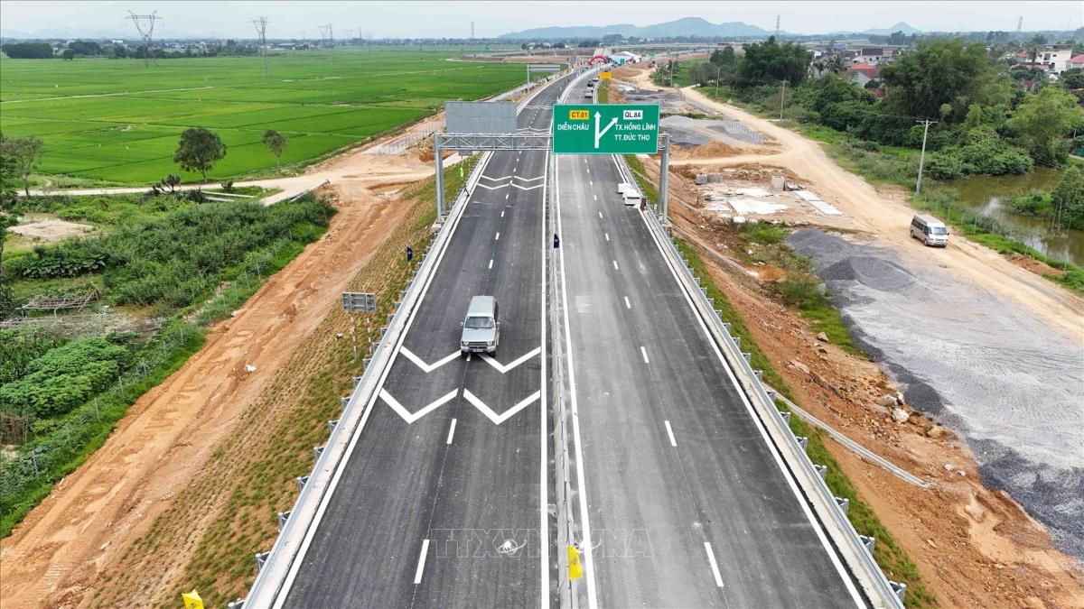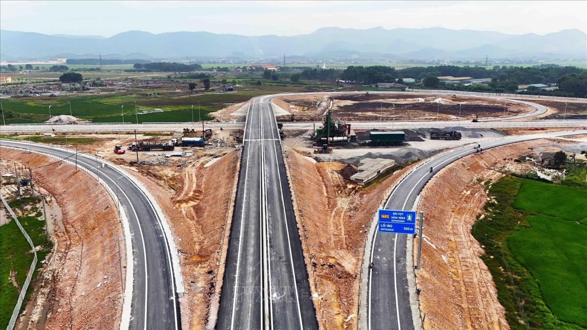 Nút giao Quốc lộ 8A là điểm kết nối cao tốc Diễn Châu - Bãi Vọt và Bãi Vọt - Hàm Nghi (19/4/2025). Ảnh: Hữu Quyết – TTXVN