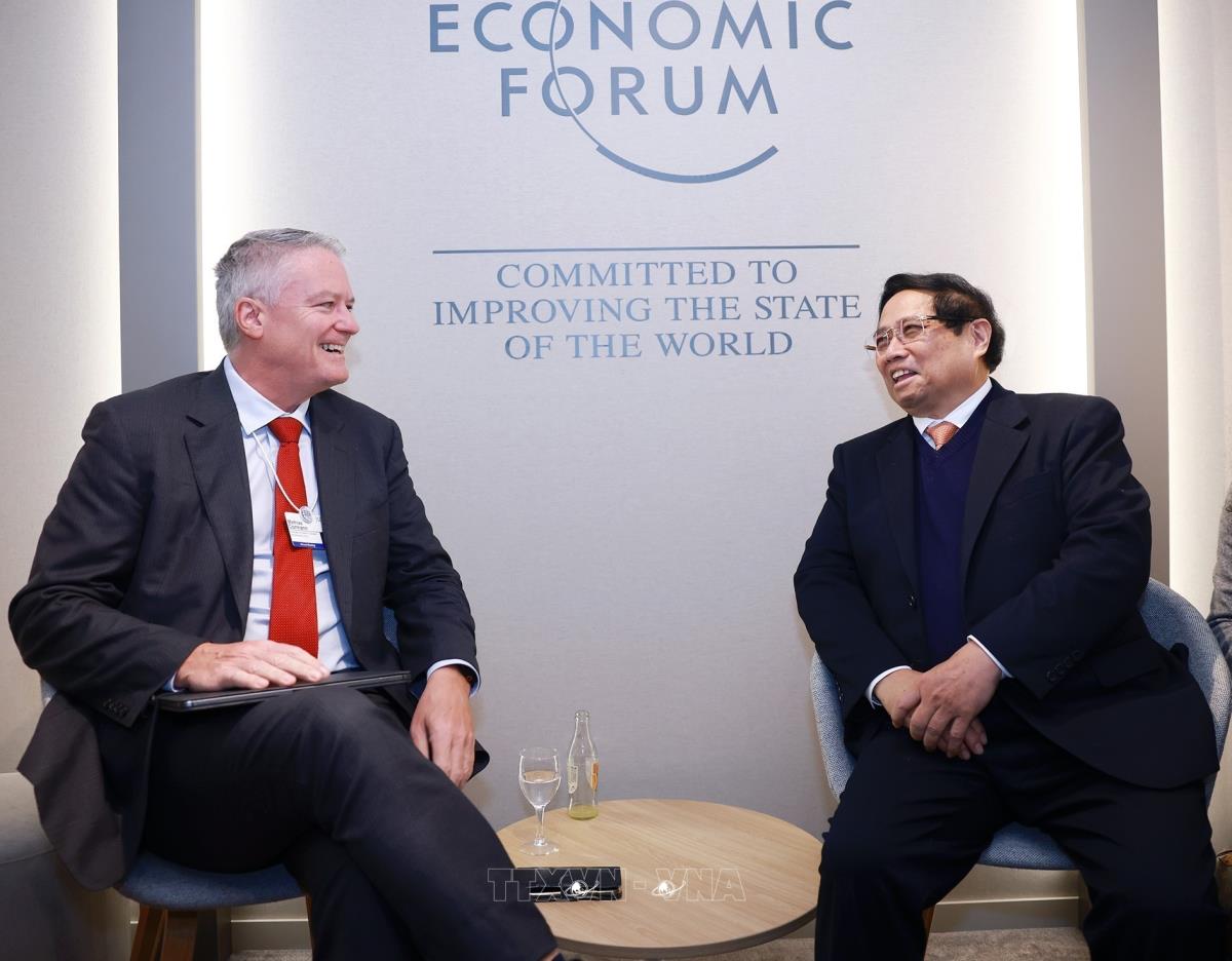 Hà Nội (TTXVN 22/1/2025) Theo đặc phái viên TTXVN, nhân dịp tham dự Hội nghị thường niên Diễn đàn Kinh tế Thế giới (WEF) lần thứ 55, sáng 22/1, giờ địa phương, tại Davos, Thụy Sĩ, Thủ tướng Chính phủ Phạm Minh Chính đã tiếp Tổng Thư ký Tổ chức Hợp tác và Phát triển kinh tế (OECD) Mathias Cormann.