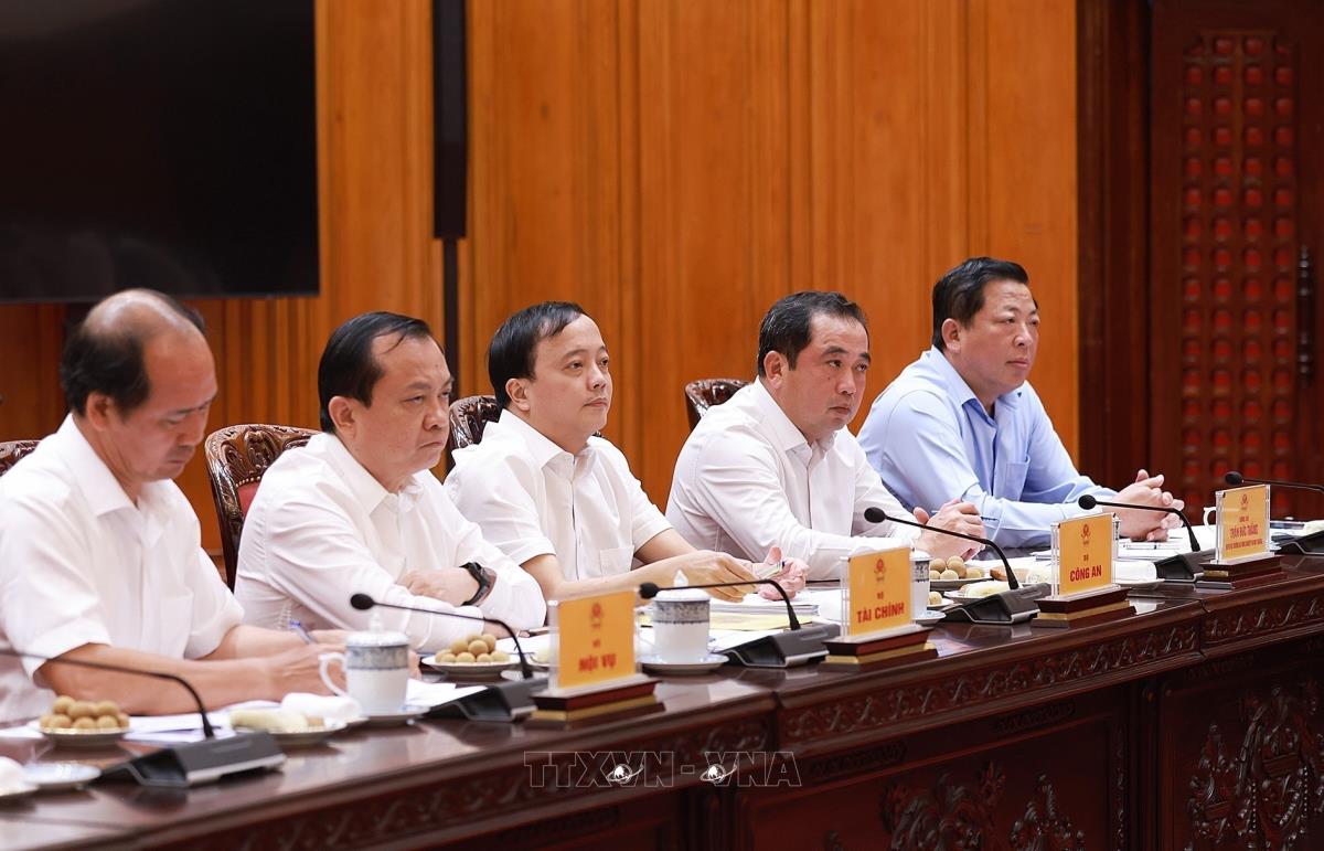 Lãnh đạo các bộ tham dự cuộc họp (27/7/2025). Ảnh: Dương Giang-TTXVN