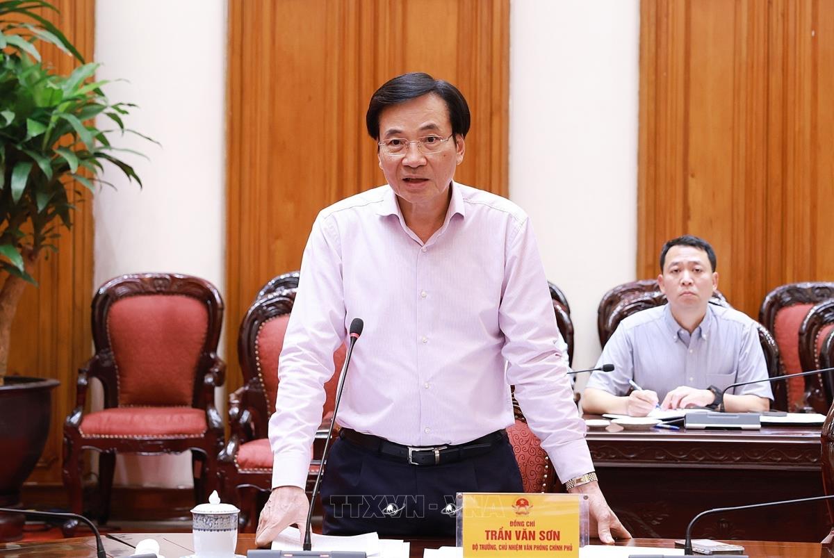 Bộ trưởng, Chủ nhiệm Văn phòng Chính phủ Trần Văn Sơn phát biểu (27/7/2025). Ảnh: Dương Giang-TTXVN
