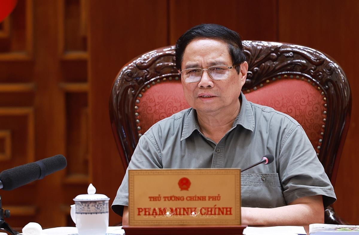Thủ tướng Phạm Minh Chính chủ trì cuộc họp về triển khai chiến dịch xây dựng trường học cho các xã biên giới (27/7/2025). Ảnh: Dương Giang-TTXVN