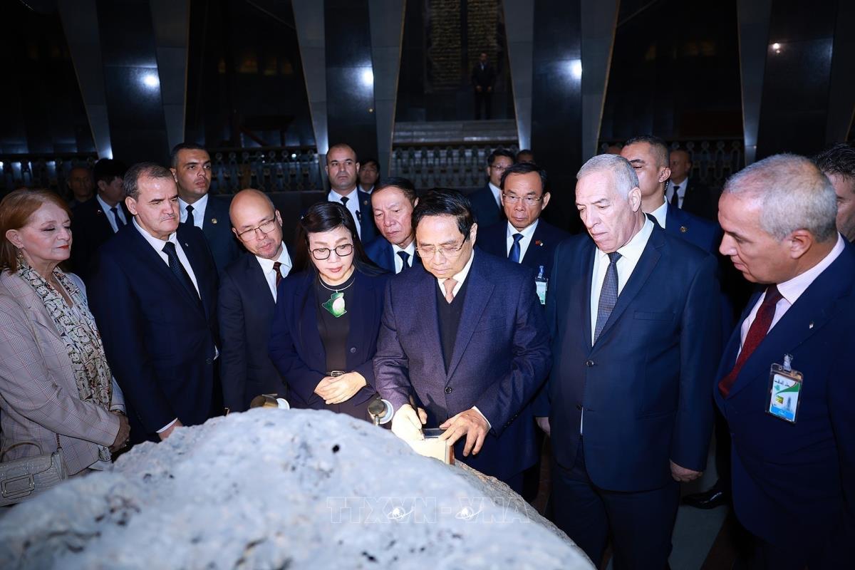 Thủ tướng Phạm Minh Chính và Phu nhân thăm Bảo tàng quốc gia về Cựu chiến binh Algeria (19/11/2025). Ảnh: Dương Giang-TTXVN