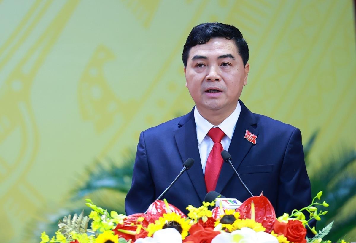 Đồng chí Nguyễn Hoài Anh, Phó Bí thư Tỉnh ủy, Chủ tịch UBND tỉnh Thanh Hóa trình bày Báo cáo kiểm điểm của BCH Đảng bộ tỉnh nhiệm kỳ 2020-2025 (15/10/2025). Ảnh: Dương Giang - TTXVN