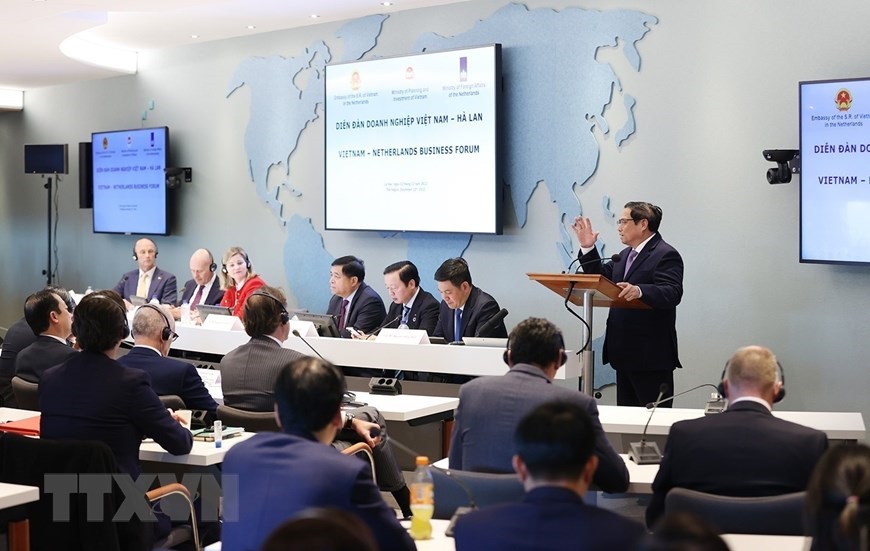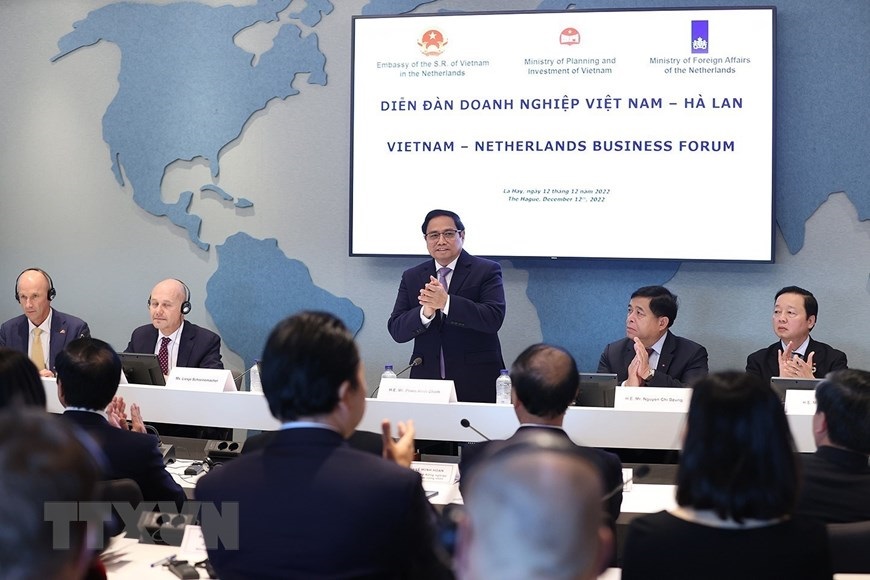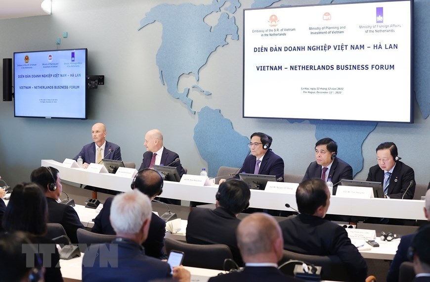 Hà Nội (TTXVN 12/12/2022) Chiều 12/12/2022, tại Den Haag (Hà Lan), Thủ tướng Phạm Minh Chính dự Diễn đàn doanh nghiệp Việt Nam-Hà Lan, tiếp một số tập đoàn, doanh nghiệp hàng đầu của Hà Lan.