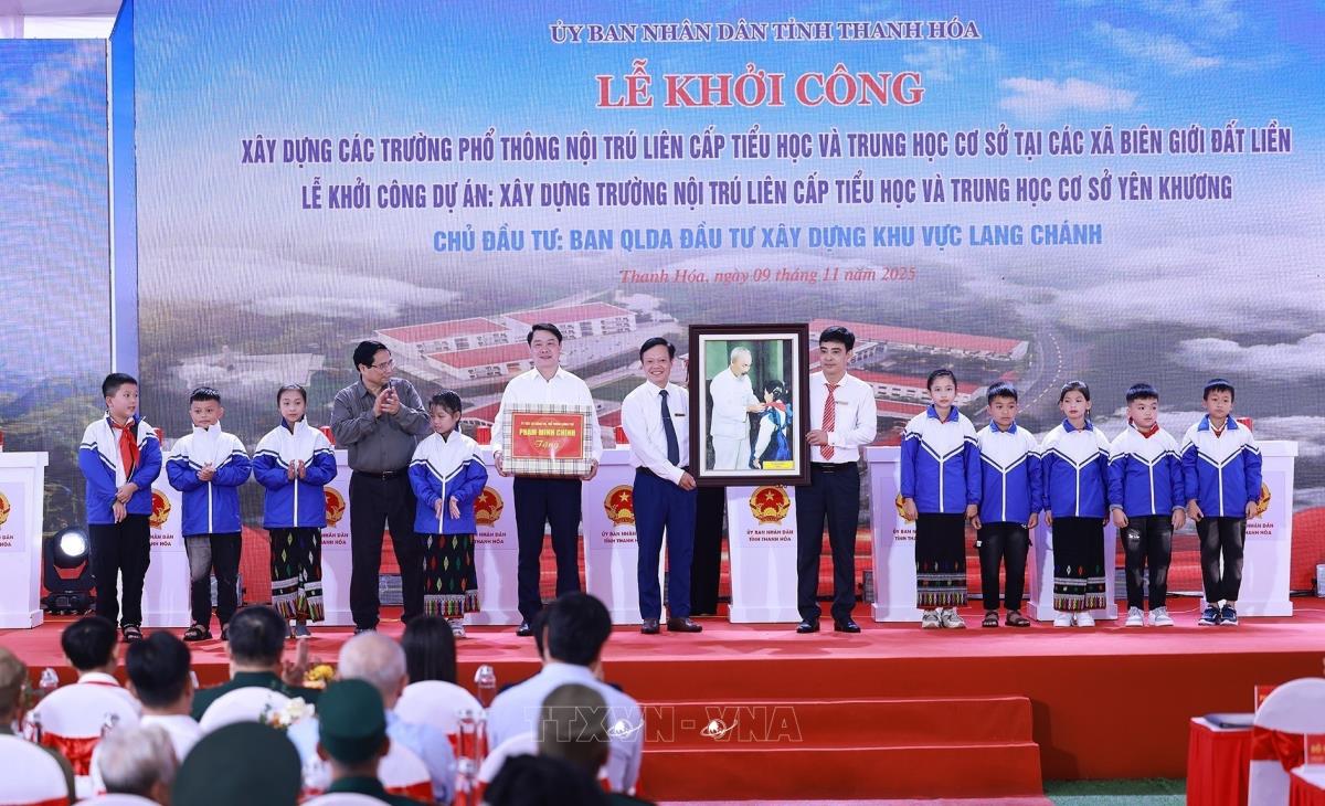 Hà Nội (TTXVN 9/11/2025) Sáng 9/11/2025, đồng loạt khởi công xây dựng các trường phổ thông nội trú và liên cấp Tiểu học và Trung học cơ sở tại các xã biên giới đất liền trên địa bàn 15 tỉnh. Thủ tướng Phạm Minh Chính dự và phát biểu chỉ đạo tại Lễ khởi công tại điểm Trường nội trú liên cấp Tiểu học và Trung học cơ sở xã Yên Khương, Thanh Hóa.