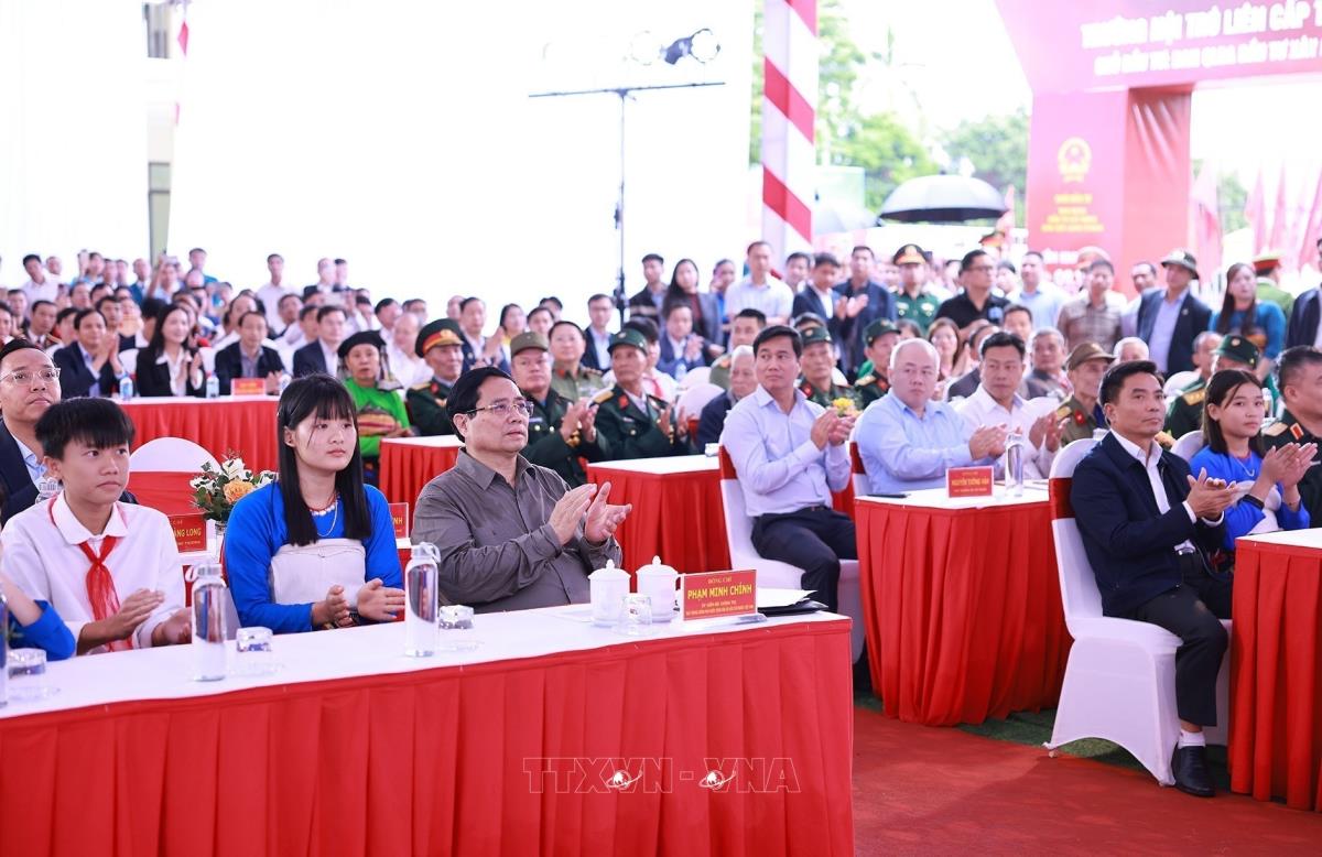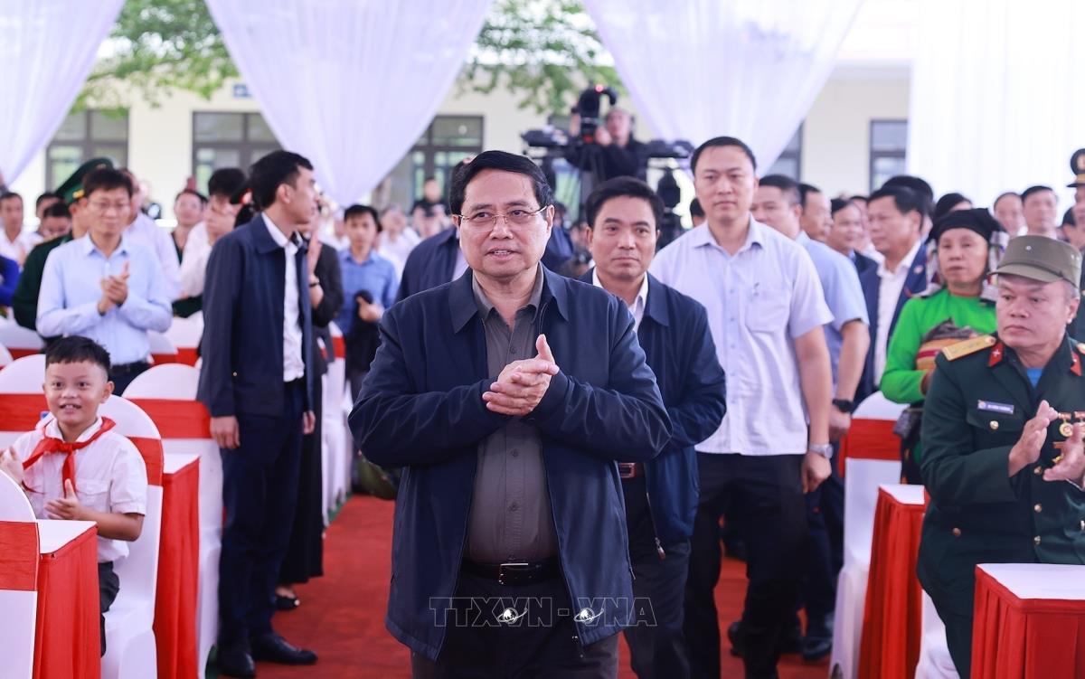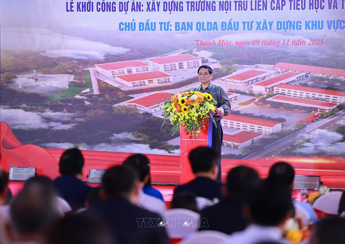 Thủ tướng Phạm Minh Chính dự Lễ khởi công tại điểm Trường nội trú liên cấp Tiểu học và Trung học cơ sở xã Yên Khương, Thanh Hóa (9/11/2025). Ảnh: Dương Giang-TTXVN