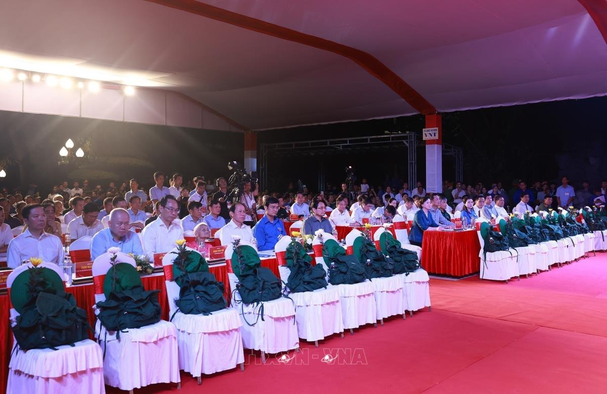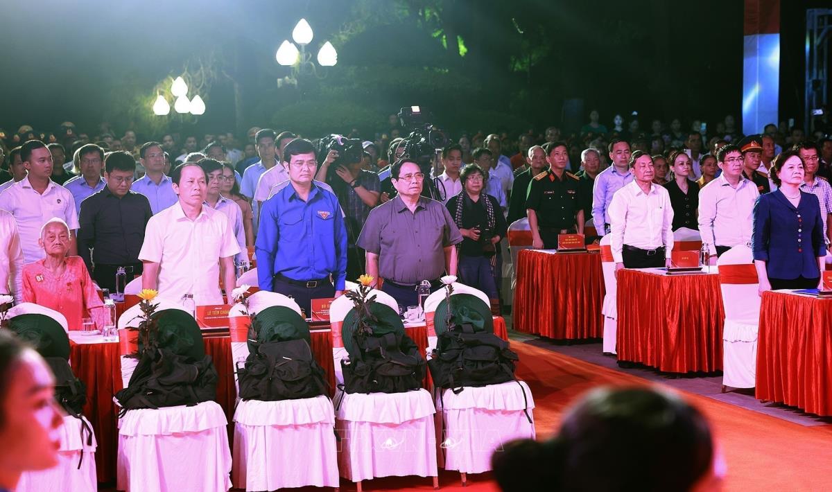 Thủ tướng Phạm Minh Chính và các đại biểu tham dự Lễ thắp nến tri ân các Anh hùng liệt sĩ tại Nghĩa trang liệt sĩ Quốc gia Trường Sơn (26/7/2025). Ảnh: Dương Giang-TTXVN