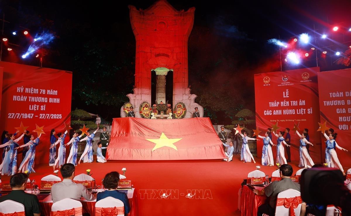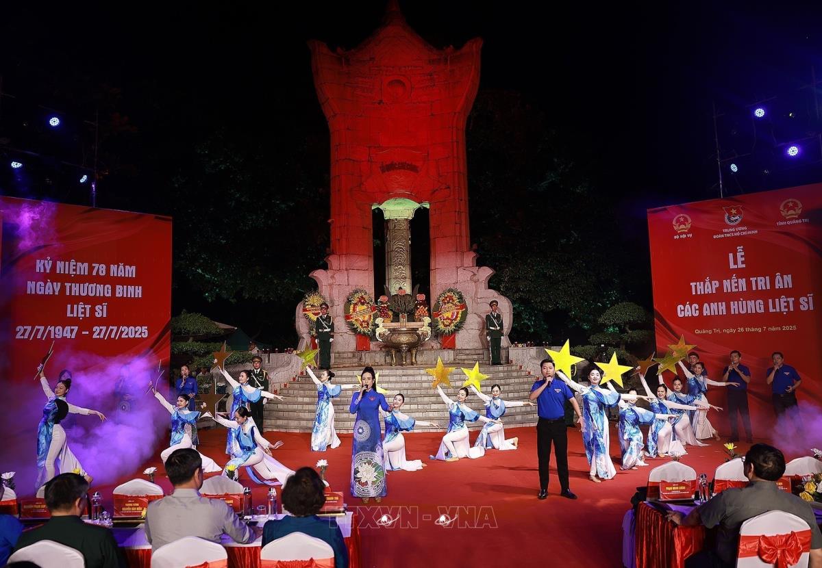 Lễ thắp nến tri ân các Anh hùng liệt sĩ tại Nghĩa trang liệt sĩ Quốc gia Trường Sơn, tỉnh Quảng Trị (26/7/2025). Ảnh: Dương Giang-TTXVN