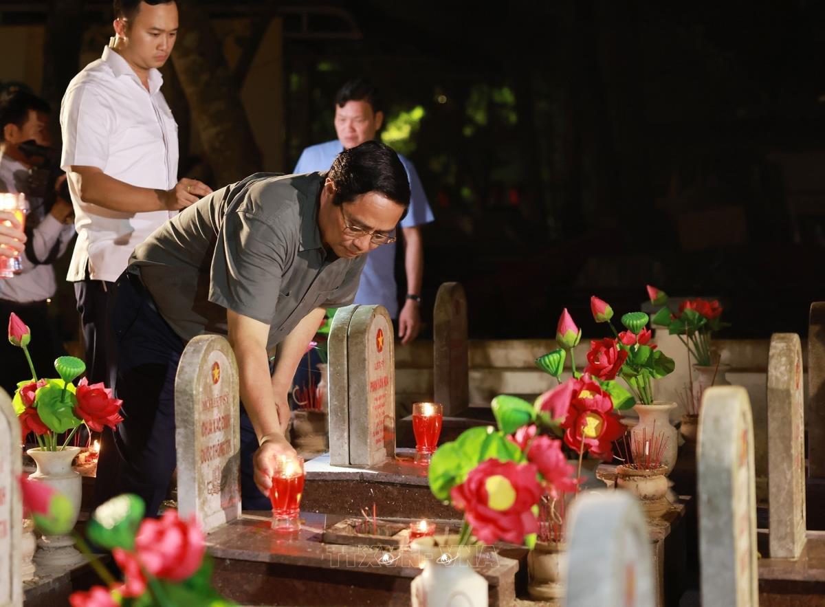 Thủ tướng Phạm Minh Chính thắp nến tri ân các Anh hùng liệt sĩ tại Nghĩa trang Liệt sĩ Quốc gia Trường Sơn (26/7/2025). Ảnh: Dương Giang-TTXVN