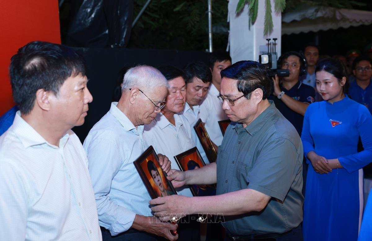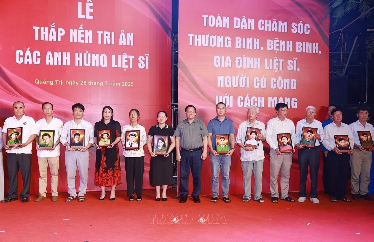 Thủ tướng Phạm Minh Chính trao chân dung liệt sĩ được phục dựng lại cho thân nhân liệt sĩ tại buổi lễ (26/7/2025). Ảnh: Dương Giang-TTXVN