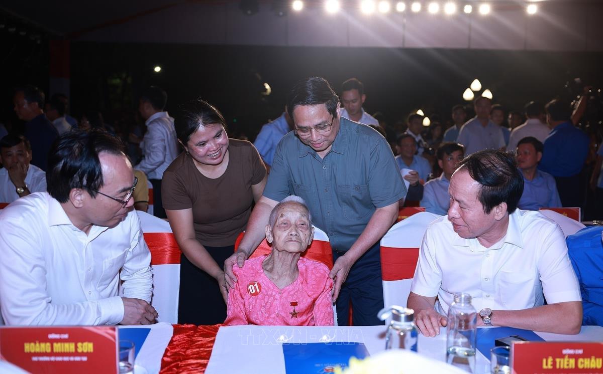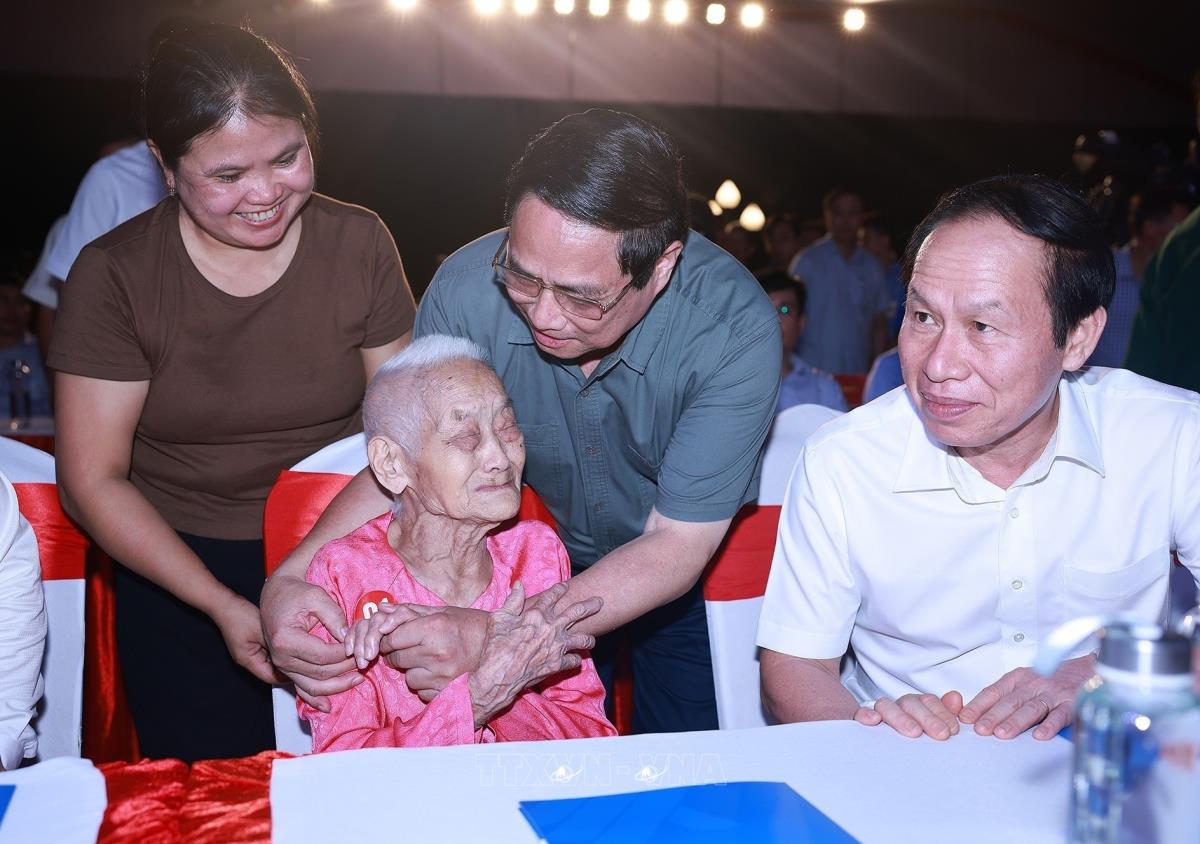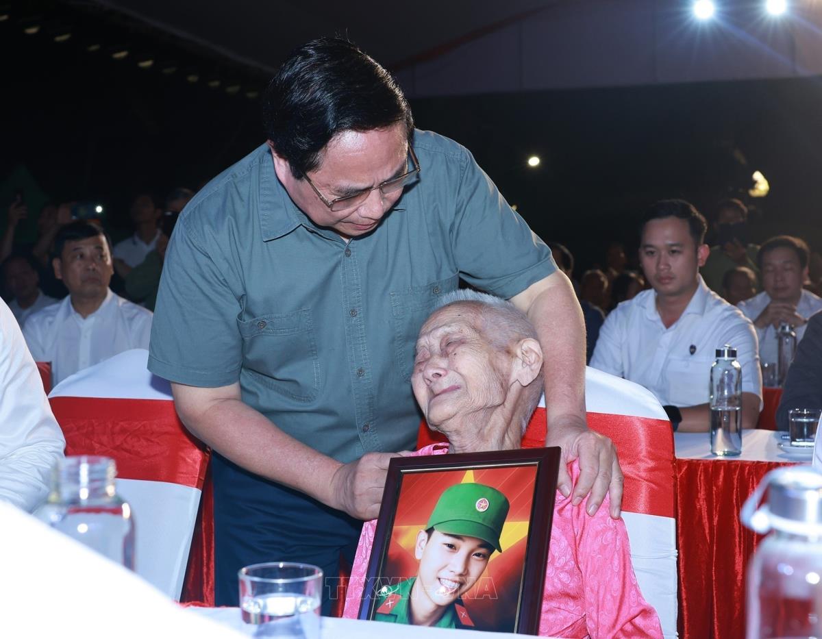 Thủ tướng Phạm Minh Chính gặp Mẹ Việt Nam Anh hùng tại Lễ thắp nến tri ân các Anh hùng liệt sĩ ở Nghĩa trang liệt sĩ Quốc gia Trường Sơn (26/7/2025). Ảnh: Dương Giang-TTXVN