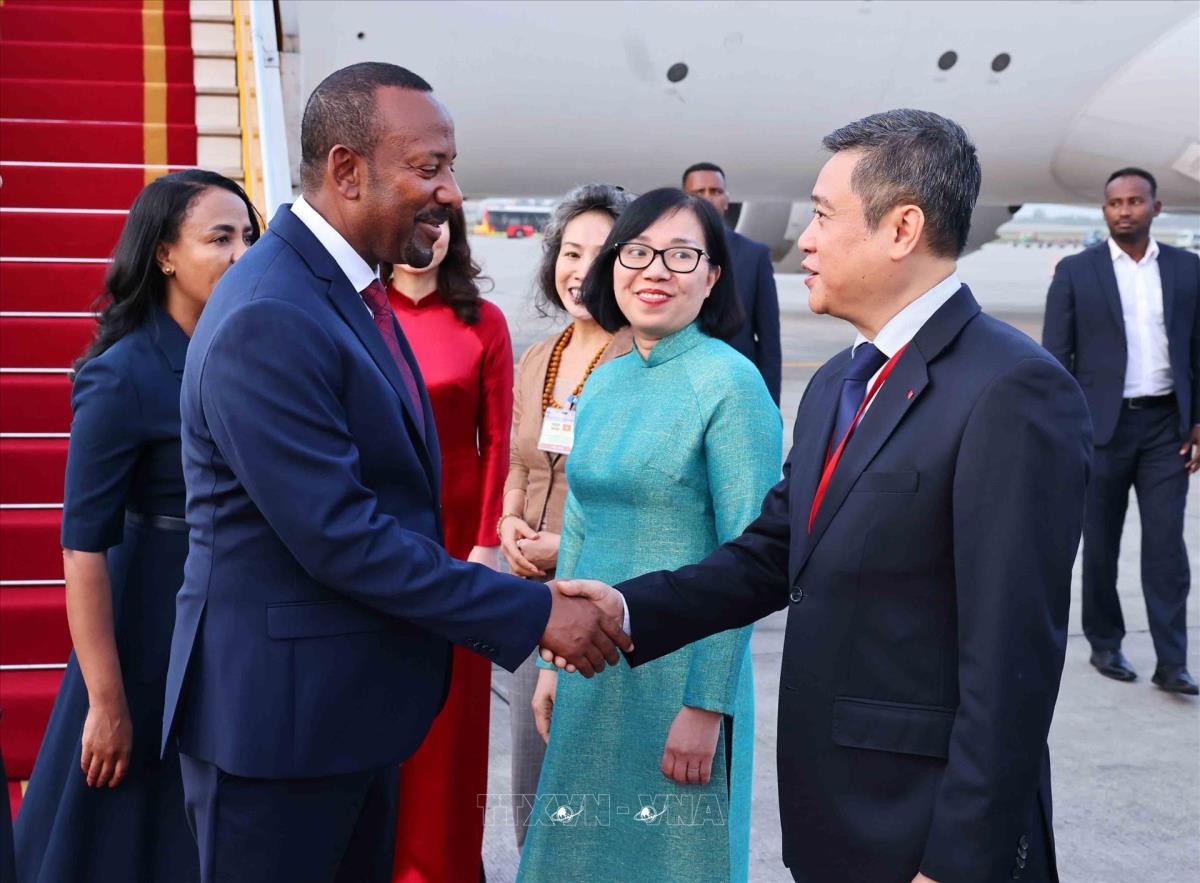 Hà Nội (TTXVN 14/4/2025) Chiều tối 14/4, Thủ tướng nước Cộng hòa Dân chủ Liên bang Ethiopia Abiy Ahmed Ali và Phu nhân Zinash Tayachew đến Hà Nội, bắt đầu thăm chính thức Việt Nam và tham dự Hội nghị thượng đỉnh Diễn đàn Đối tác vì Tăng trưởng xanh và Mục tiêu toàn cầu (P4G) lần thứ tư từ ngày 14 đến ngày 17/4/2025, theo lời mời của Thủ tướng Chính phủ Phạm Minh Chính và Phu nhân.