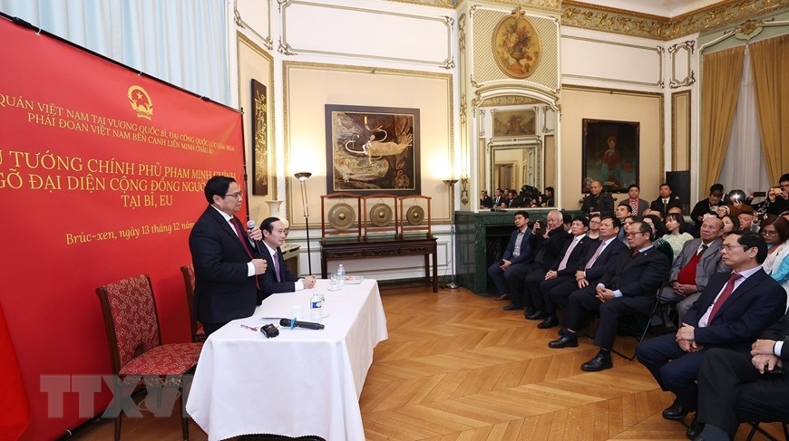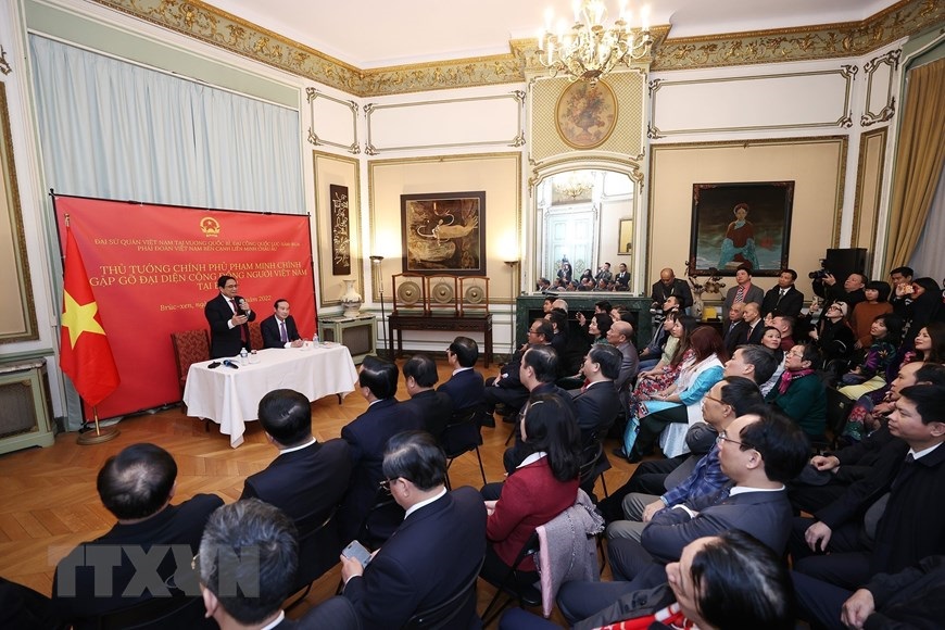 Hà Nội (TTXVN 14/12/2022) Tối 13/12/2022 (giờ địa phương), tại thủ đô Brussels, Thủ tướng Chính phủ Phạm Minh Chính đã gặp gỡ đại diện cộng đồng người Việt Nam tại Vương quốc Bỉ và một số nước châu Âu.