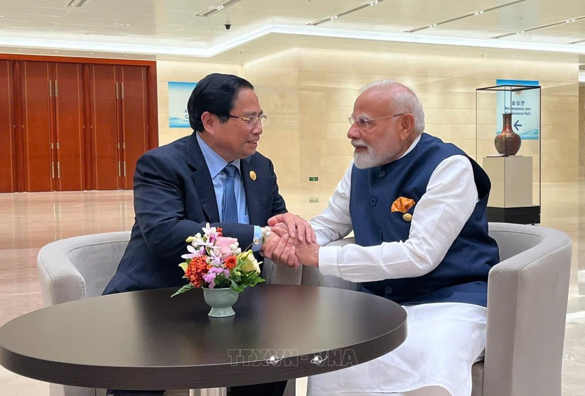 Thủ tướng Phạm Minh Chính gặp Thủ tướng Ấn Độ Narendra Modi (1/9/2025). Ảnh: TTXVN