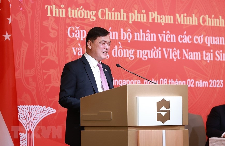 Đại sứ Việt Nam tại Singapore Mai Phước Dũng phát biểu.(Ảnh: Dương Giang/TTXVN)