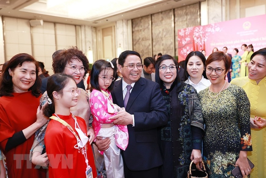 Thủ tướng Phạm Minh Chính phát biểu tại cuộc gặp. (Ảnh: Dương Giang/TTXVN)