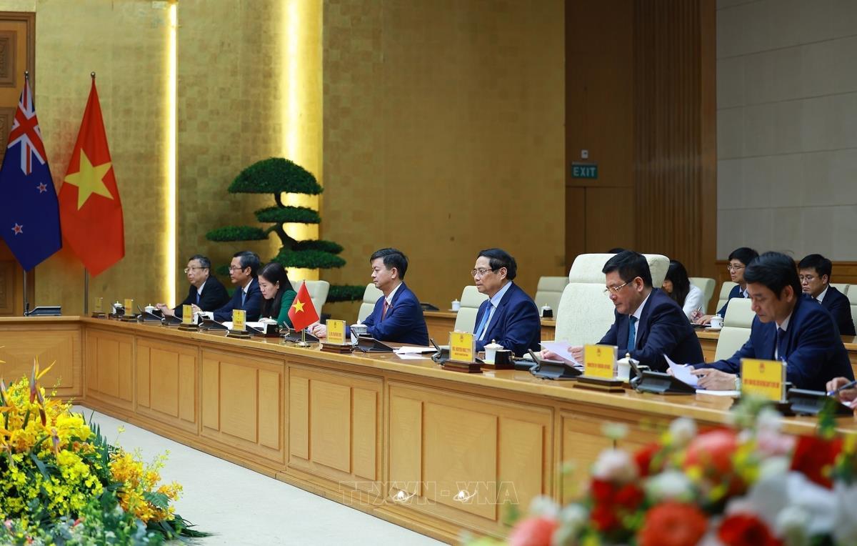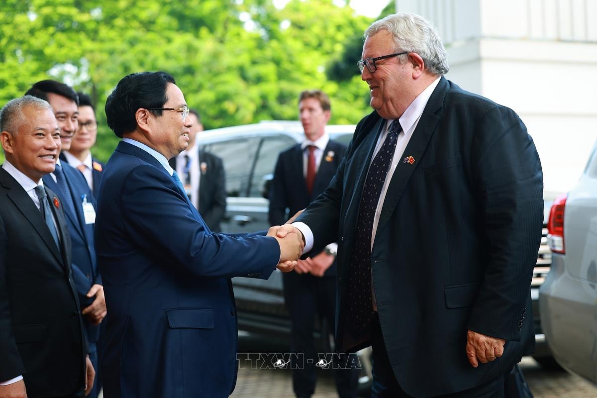 Thủ tướng Phạm Minh Chính hội kiến Chủ tịch Quốc hội New Zealand Gerry Brownlee. Ảnh: Dương Giang – TTXVN