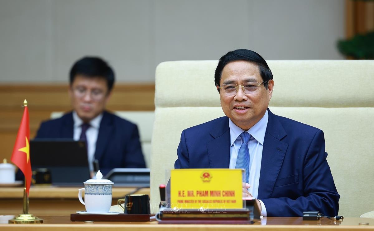 Thủ tướng Phạm Minh Chính phát biểu tại cuộc hội kiến Chủ tịch Quốc hội New Zealand Gerry Brownlee. Ảnh: Dương Giang – TTXVN
